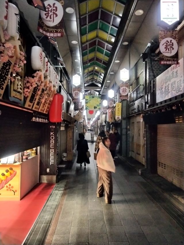 二次会へ 錦市場も人がいない。 店閉まってるからね。