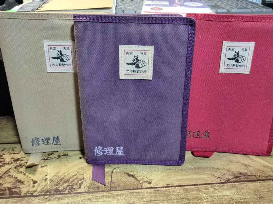 ブックカバー^^ これを手帳でも使っている。 赤いのは誕生日で家族にもらったやつ。 それの色違いが二つ。 2025年はベージュを使ったので 今年は紫で^^