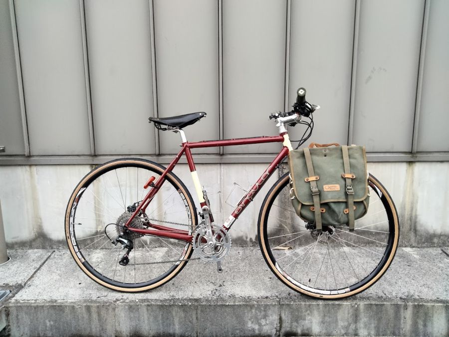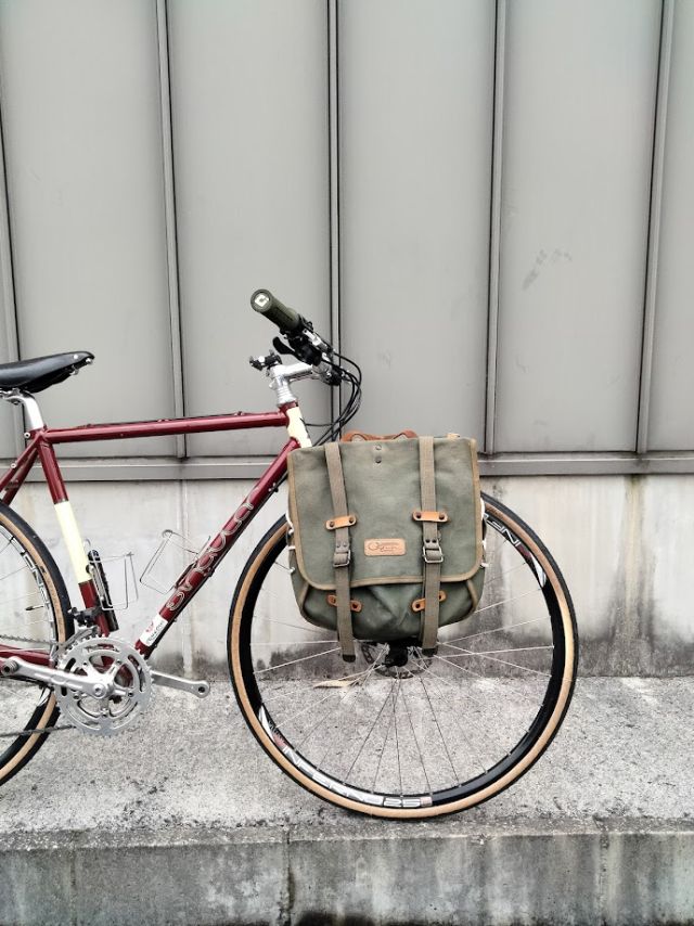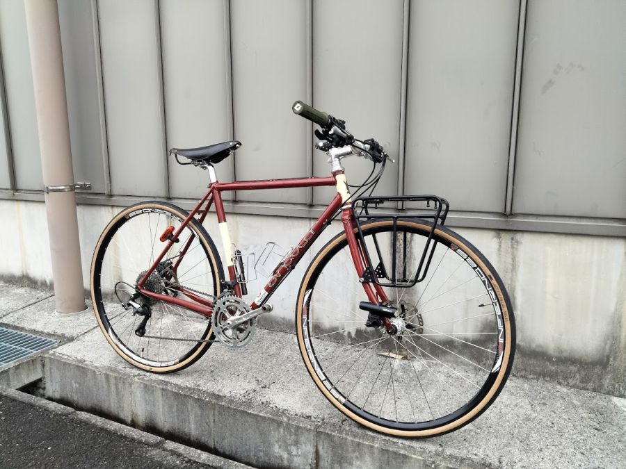 Singular Peregrineのライトの位置。 フロントキャリアを変えたのでハンドルバーにライトを取り付けた。 本来はキャリアのところに付ける方がしっくりとくる。