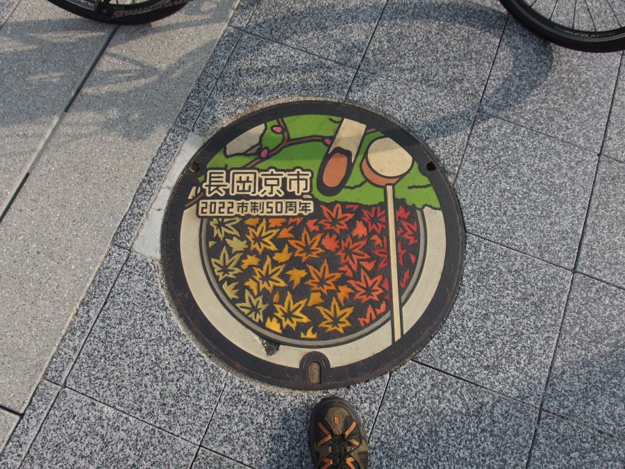 カラーマンホール^^ 長岡京市の市制50周年を記念して作成されたマンホール蓋。 10か所ほど設置されているようや。